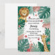 Söt rosa djungel safari första pojkfödelsedag inbjudningar