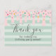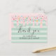 Födelsedags tack-kort med söt rosa droppe med strössel, ljusa och mörka gröna ränder som representerar en läcker tårta.