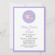 Vit och lila babyduschinbjudan, med lavender och akvariecirkel överst, med en söt rosa karusellelefant från stil. En lila med vit polka punkt mönster täcker baksidan. Anpassa all text fält för din babyduschhändelse.
