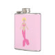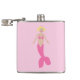 Den här höftkolven i fantastisk har en digital bild av en Sjöjungfru för söt rosa. Hon har blonda hår och blå ögon och en rosa snäcka överst. Hennes svan är rosa och täckt i söt rosa med diamantformade skalor. Hon bär ett hjärtformade halsband i guld och ett ring i guld på sitt finger. Hennes nagel är rosa och hon har rosa läppstift på. Hon bär också en vacker rosa buk i håret.