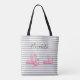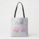 Söt rosa flamingo anpassat namn trendig grå ränder tygkasse