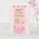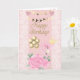 Söt rosa flamingo med krona, ballonger födelsedag kort
