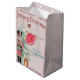 Den här glamorösa presentpåsen i helgdag med anpassningsbar har ett illustrerat Nutcracker-jultema. En bild av Nutcracker och Sugar Plum Fairy framför Julgran placeras vid grund. Bakgrunden är ett mjukt rosa färg med teal färgad-typsnitt. En söt, faux rosa glitter ram gräns.