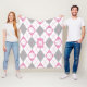 Det här färgade basketlaget färg fleece-filten för flickor har en rosa, grått och vit argyle i mönster med rosa "stygg" som sträcker sig diagonalt över diamantformerna och halvgenomskinliga basketskulor som täcker och blandas med rosans diamantformer - anpassa med idrottsmannens monogram - av katz_d_zynes