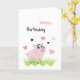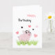 Rolig och söt rosa gris med födelsedagsönskningar