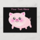Söt rosa gris på svart bakgrund vykort