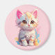 Söt Rosa Gul Kawaii Kattunge Magnet