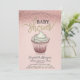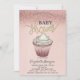 Söt inbjudan till baby shower med rosa guldglitter-bokeh och en cupcake-baby shower. Dessa inbjudningar till baby shower kan enkelt anpassas för ditt evenemang genom att helt enkelt lägga till dina uppgifter.