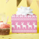 Vackert rosa julomslag pappra med söt renar och vitt snöflingor på en söt mönster. Chicens gigantiska hjort för en klassisk känsla.