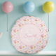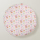 Förvandla ett barnrum eller lekrum till en sagoland med denna förtrollande runda kudde. Mot en mjuk, babyrosabakgrund spelar en rosabrun kanin trumpet mitt i en fantasifull värld av lila fjärilar, leende hjärtan och blommande växter.