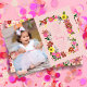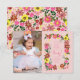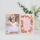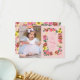 Skickade det här söta tack-kortet till dina gäster med söt liten kanin med tusenskönor blommor och små kaniner som hoppar runt illustrationen för din dotters första födelsedagsfest, ett år gammal. Baksidan har ett rosa blomster mönster. Original konst av Caroline Bonne Müller.