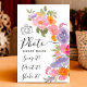 Lägg till en aning roligt och kreativitet i studentfesten med den här charmerande, handmålade "Photo Guest Bok"-tecknet. Den här blommigten har en snygg vattenfärgsdesign i pulserande skuggor av rosa, lila, orange och grönt och kompletterar på ett vackert sätt alla dekorationer i firande. Teckensnittet i eleganten, parat med visuella instruktioner för "Fäst det! Skriv ut det! Skaka det!" uppmuntrar gästerna att fånga minnen och lämna sitt märke på ett unikt och interaktivt sätt. Perfekt för att vägleda gäster till fotogästen bok station, det här tecknet lägger till en personlig och snyggt beröring till din speciella dag.