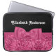En chic rosa och svart 15-tums laptop sleeve med ett feminin och snyggt ro och ett gigantiskt shock rosa som är bundet till en söt båge. Anpassa den här söt romantiska rosan-blommans designade mode-tillbehör genom att lägga till ditt namn. Platt utskriven bild, inte egentligt menyfliksområde. ©Tracie Kaska är upphovsman till konstverk.