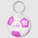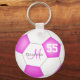 Den här personlig-flickans fotbolls-knackningskedja har en klassisk fotboll med rosa och vita paneler - anpassa spelarens namn, monogram och jersey-nummer - efter katz_d_zynes