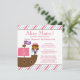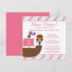 Den här söta 5,25x5,25 fyrkantiga födelsedagsinbjudan för flickor har ett rosa och lila pirattema! Det finns en afroamerikansk/etnisk pirat som seglar på sitt piratskepp och står bredvid en papegoja på vänster sida. Längs de övre och nedre kanterna finns ett trendigt mönster med rosa, vita, taupe och akvatiska ränder. Till höger kan du enkelt anpassa din festinformation. Vissa designelement av STOCKBERRY STUDIO