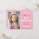 Söt rosa prickig flicka foto födelsedagsinbjudan. Söt fotofödelsedagsfest inbjudan för flickor. Ladda upp ditt foto och anpassa all information på framsidan av kortet. Kortet är i rosa och vita färger och baksidan har ett fint vitt prickmönster i vitt och rosa.