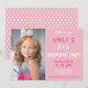 Söt rosa prickig flicka foto födelsedag inbjudningar
