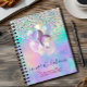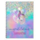 Gör skolstarten rolig med den här söta personliga anteckningsboken. Den är designad med eleganta, flickiga iriserande glitterdroppar i enhörningsregnbågens rosa färger.