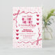 Söt Rosa Röd Liten Älskling Första Födelsedag Inbjudningar