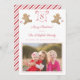 ** Foto: Fotografi © Storytree Studios, Stanford, CA ** Roligt och fantasifullt lyckliga högtider familjefotokort design. Designen har en akvarell pepparkaksgubbe (tjej? person?), ursprungligen handmålad av mig, och röda / vita pepparmynta ränder, skapade digitalt av mig.