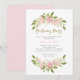 Dessa vackra och trendig födelsedagsfest inbjudan har vackra, rosa vattenfärgen ro i sprejer med stora löv av grönt. Det finns faux guld, trendig-skript, och baksidan av inbjudan är en matchande rosa färg.