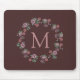 Söt blommigts monogrammade gåvor och tillbehör på djup burgundi.