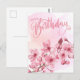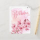 Rosa körsbärsblomma med vattenfärgssprut och livlig typografi 'Grattis på födelsedagen' födelsedagsgratulationskort.