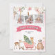 Söt rosa släde med skogsdjur julfoto julkort