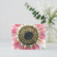 Det här söt vykortet innehåller ett detaljerat, närfoto av en söt rosa Solros. Fotografiet togs med hjälp av makrofotografi och visar de pulserande petalerna för rosa och den fina blommans invecklade detaljer.