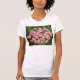 Den här vackra skjortan av dam innehåller ett detaljerat foto av en grupp stjärnformade vilda blommor av söt rosa, där var och en har ett känsligt vitt centrum. Fotot togs med makrofotografi för ett detaljerat resultat.
