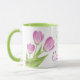 Söt Rosa Tulips Vår Elegant Blommigt Monogram Mugg