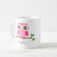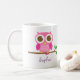 En söt bild av en rosa uggla med små hjärtan på magen sitter på en gren med blad. Söt och rolig design för tjejer! Personliggör med barnets namn!