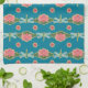 En chic Kitchen eller Tea Towel, med mönster av rosa Vatten Lilies och blue Dragonflies, från en handmålad papper kollage av Judy Adamson. Utmärkt gåva till någon med en Julfödelsedag, en del av Posh & Painterly 'Lily Pond'-samlingen.
