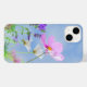 Söt rosa blommor och lavender-ängar på en ljusare vår dag mot blå himmel.
