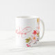 En vacker rosa handmålad blommigt med vattenfärg, arrangemang illustration på ett mugg med ett eget personlig monogram och namn.