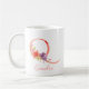 Söt rosa vattenfärgen brev ’Q’, förskönad med en delikat vattenfärgad blommigt bouquet, personlig med namn, kaffe mugg.