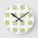 En söt runt väggklocka med mönster av rosa rosenknoppar på vit bakgrund från en handmålad design av Judy Adamson.