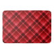 Ett stort badmatt med en vacker diagonal plaid mönster-design i ruby red.