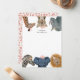 Snygg barnbrevpapper med handritad illustration av savannens djur (giraff, leopard, noshörning, lejon, elefant och zebra) med rosa blomsterkrans, födelsedagsmössor och diadem.