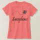 Kvinna Saxophone t-shirt har söt blå butterfly logotyp och saxofonslogan. Perfekt för saxofonspelare i skolband eller orkester, det är också en trevlig helgdag för musiklärare och saxofonger i professionellen.
