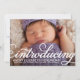 Det här vackra enfoto-baby-meddelandet har ett fantastiskt kalligrafiskt skript som täcker ett fullt-utfall av ditt nya lilla foto.