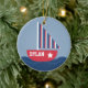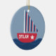 En färgglad prydnad som har en söt segelbåt med ränder som seglar på havet. En färgglad palett av rött, vitt och blått. Perfekt för små sjöpojkar som älskar maritima och nautiska teman. Personalisera båten med barnets namn.