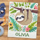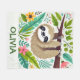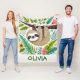 Denna glada personliga filt med fleece har en söt sengångare som hänger upp och ner från en trädgren, omgiven av färgglada djungelblad och tropiska blommor. Sengångaren har en vänlig, tecknad stil.