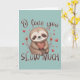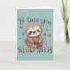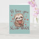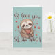 Roligt och humoristiskt valentin eller årsdagskort med en fin vattenfärg illustration av en söt senguidad, med den roliga ordvitsen "jag älskar dig långsamt så mycket". Lägg enkelt till din personliga hälsning genom att redigera mallfältet, eller ta bort exemptexten för att skriva för hand.