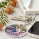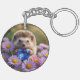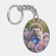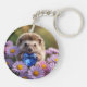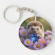 En söt igelkott som håller en hjärtformad safir sitter i en rabatt med rosa och lila astrar.