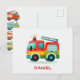 Skicka ett leende med detta söta och färgglada serie brandbil postkort! Perfekt för barn, brandbil entusiaster och alla som älskar roliga, livfulla mönster. Detta charmiga postkort visar en lekfull illustration av en brandbil, komplett med stege och blinkande lampor. Perfekt för födelsedagsgratulationer, tackkort eller bara för att lysa upp någons dag.