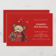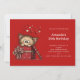 En födelseinvitation med en söt teckning av en liten kattunge som sticker ut huvudet ur en presentlåda.