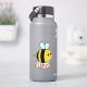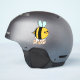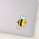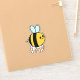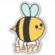 En bedårande, fantasifull seriehumla med svarta och gula ränder, blå vingar, rosiga kinder och ett lyckligt leende. Hon bär ordet glad som är i en orangefärgad text med en prickad kontur.