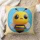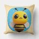 Bedårande digital illustration av en seriebi, randig kropp och vingar, sittande mot en gradientblå cirkulär bakgrund. Lämplig för barnkonstruktioner, digital konst eller lekfulla koncept.