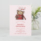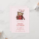 En födelsedagsinbijudan med en söt ritning av en liten kattunge som sticker ut huvudet ur en gåvlåda. Lådan är inslagen i rött och en slinga med ett litet hjärtmönster. Massor med hjärtan svävar ovanför dess huvud. Söt och bedådrande för Alla hjärtans dag.